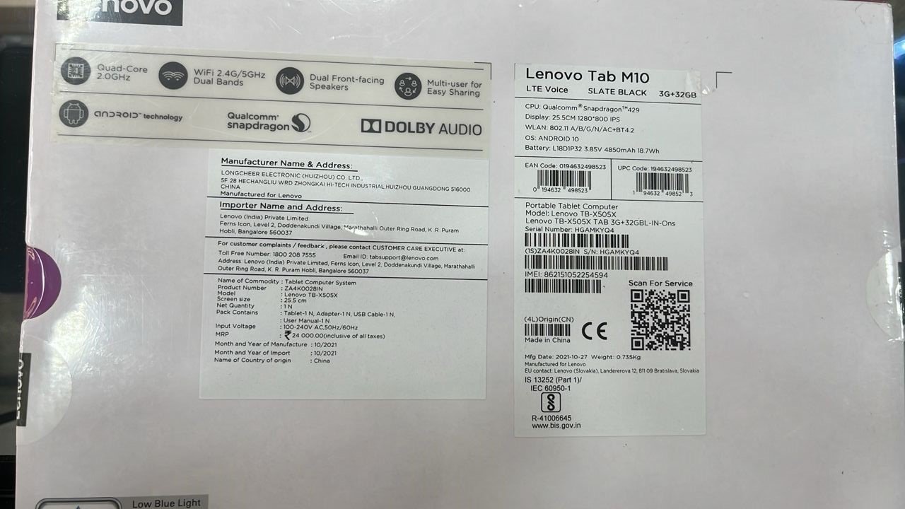 Lenovo Tab M10 – 10.1″ Tablet – 3GB RAM – 32GB Storage – 4G LTE